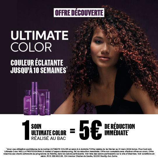 En ce moment, profitez de 5€ de réduction immédiate pour tout soin Ultimate Color réalisé au bac.